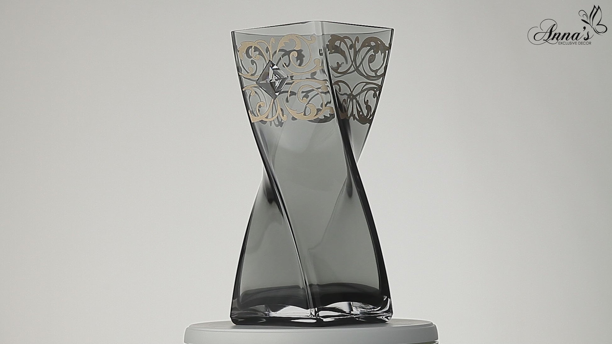 - TIMELESS DESIGN: the transparent grey body is accented with a large luxury CRYSTAL and etched ornamental decor painted in gold to add an elegant touch to any interior. This skillfully handcrafted vase will look beautifully on its own, as well as part of a flower arrangement or as a candle holder. Ideal as a home or office decor accent and as a wedding centerpiece.