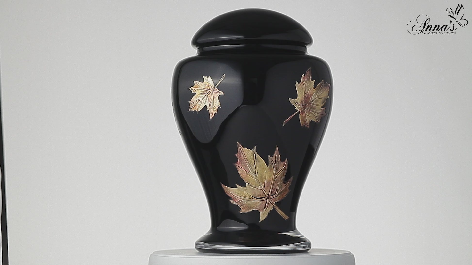 - TIMELESS DESIGN: the black sleek body is accented with etched and painted METALLIC BROWN LEAVES to allow for a beautiful and everlasting display in memory of your loved one and celebrating their life at the funeral, home or at the columbarium. Let this artistic urn help keep all the cherished memories of your loved one alive.