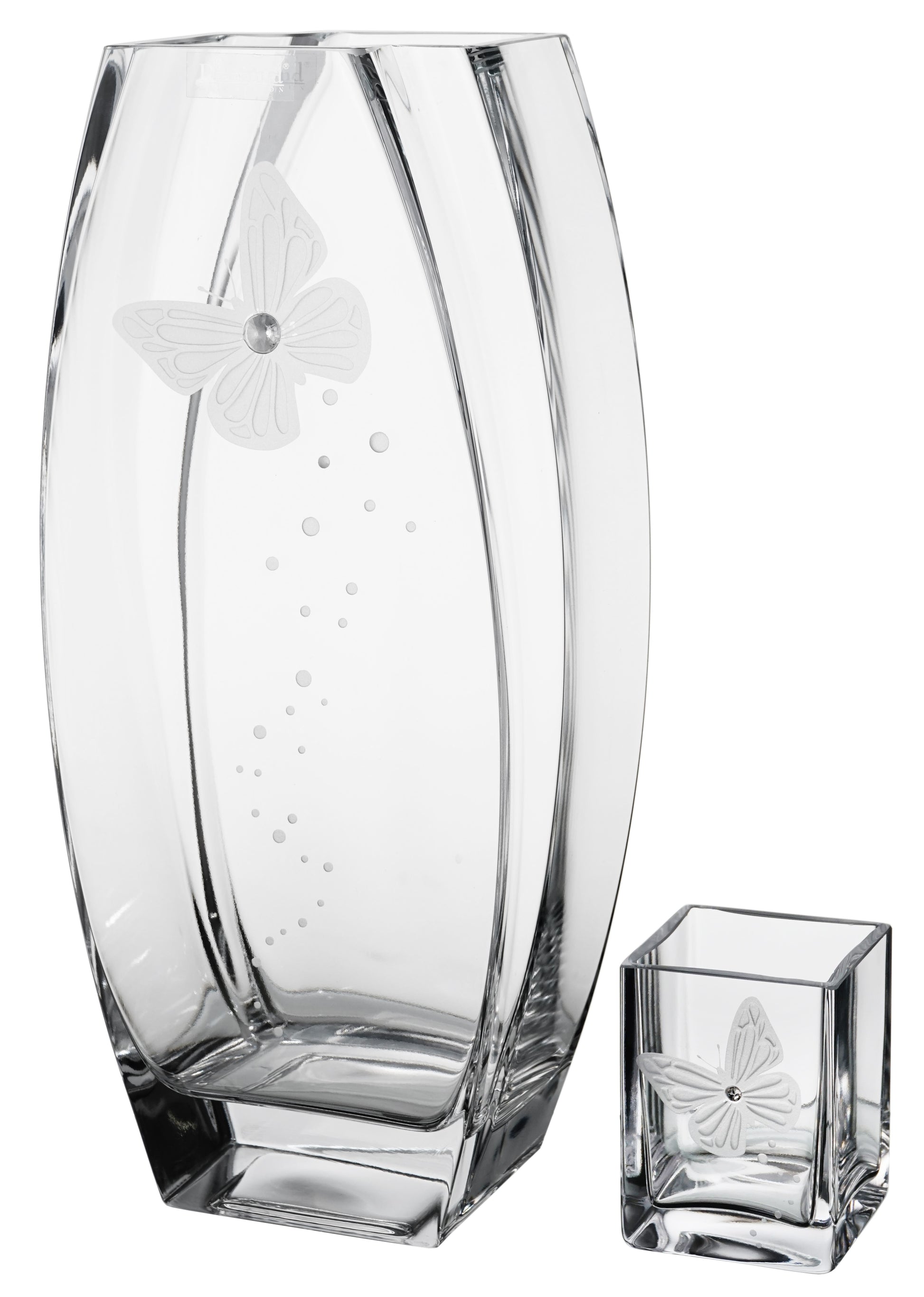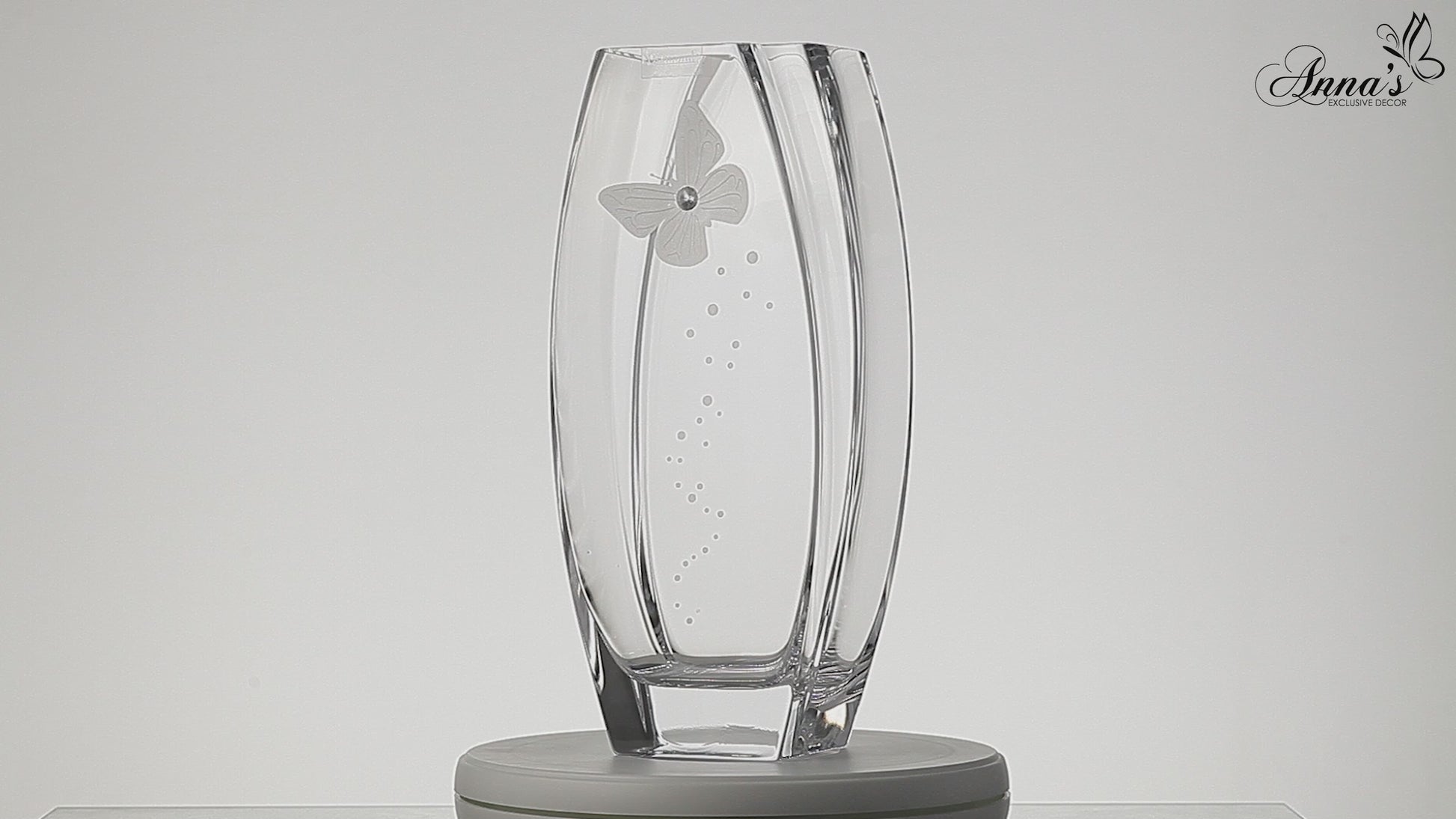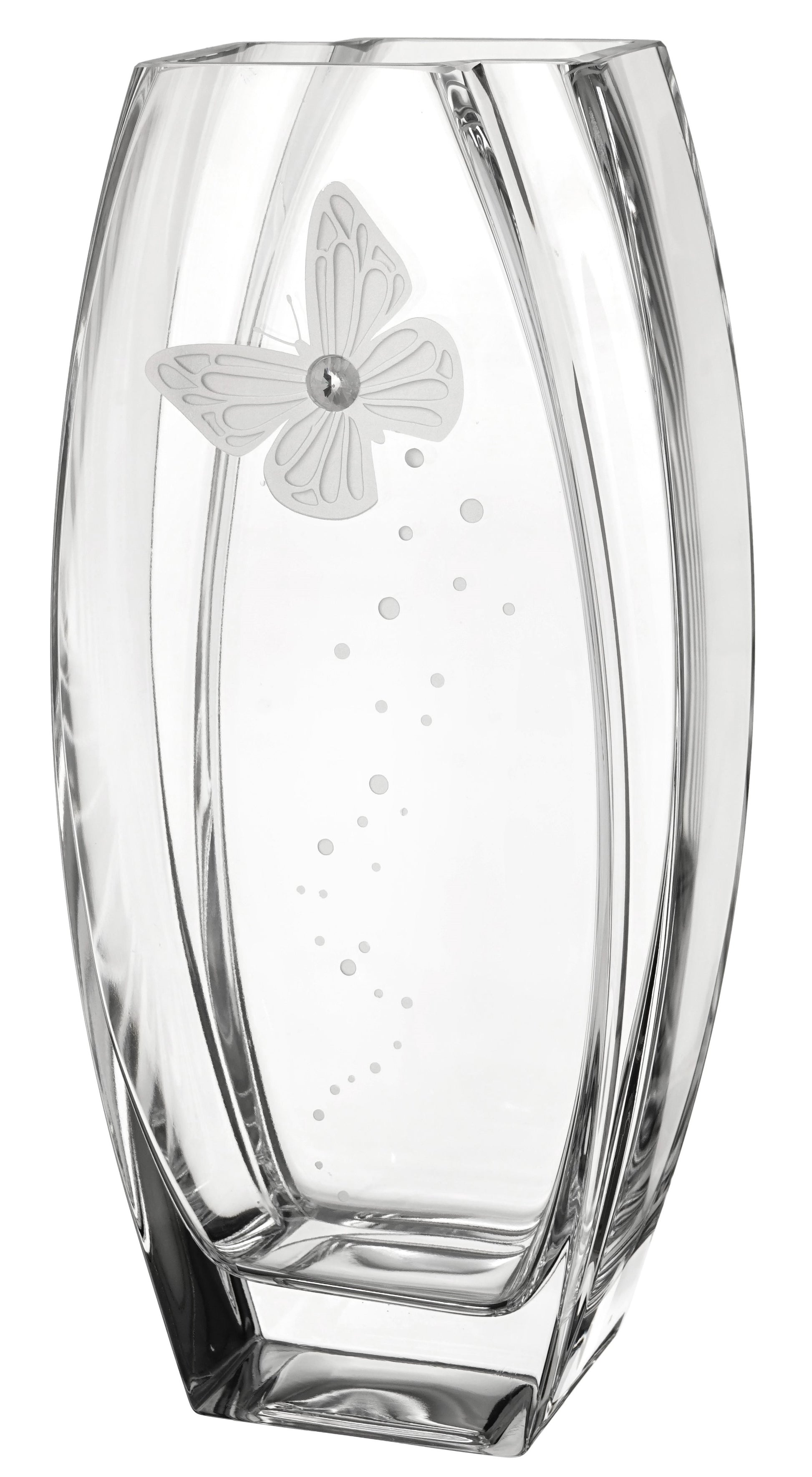 - TIMELESS DESIGN: sleek transparent body accented with a sparkling SWAROVSKI crystal and etched butterfly will surely add an elegant touch to any interior. This skillfully handcrafted vase will look beautifully on its own, as well as part of a flower arrangement.